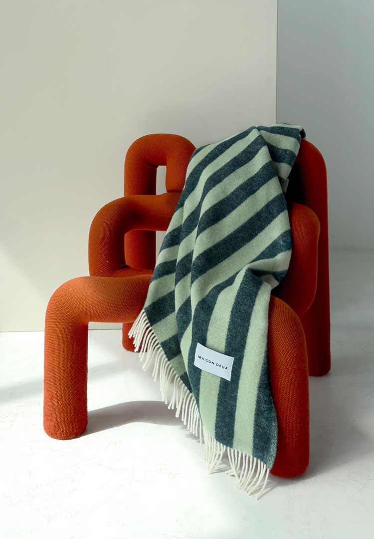 Des rayures au caractère affirmé ! Le plaid en laine CANDY WRAP de Maison Deux apporte une touche fraîche avec son vert profond et son motif réversible. Confectionné en laine 100 % néo-zélandaise et terminé par de fines franges, il allie modernité et douceur au toucher.