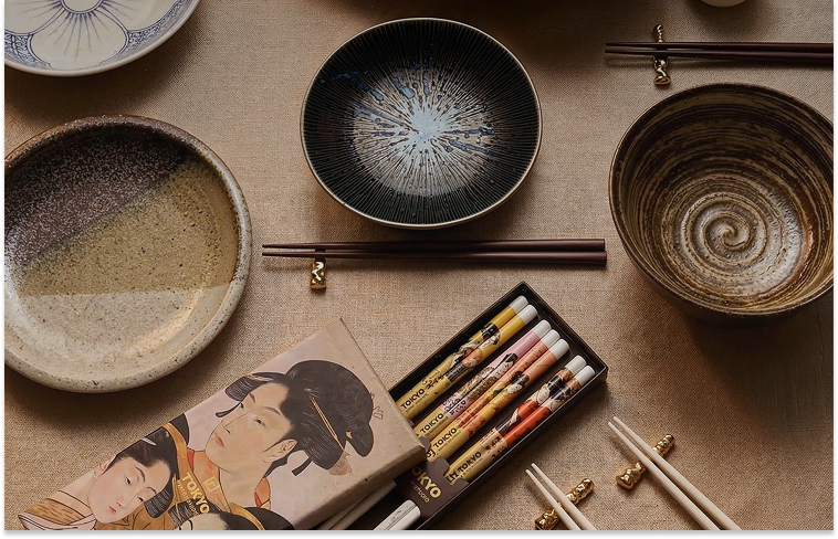 Porcelain Tayo Bowls Flora Japonica with Chopsticks, Set of 2