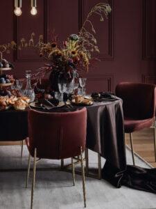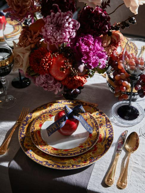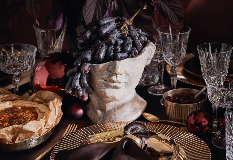 Si, pour vous, Noël est synonyme de fêtes luxueuse pour les bons vivants, composez une table qui évoque l’opulence épicurienne avec des références à l’Antiquité. Des assiettes dorés viendront alors côtoyer des textiles aux couleurs rappelant le vin rouge et le chocolat, comme le bordeaux et le marron. Votre devra table aussi être abondamment ornée d’accessoires et de victuailles ; tous deux participent à la décoration et à l’ambiance.