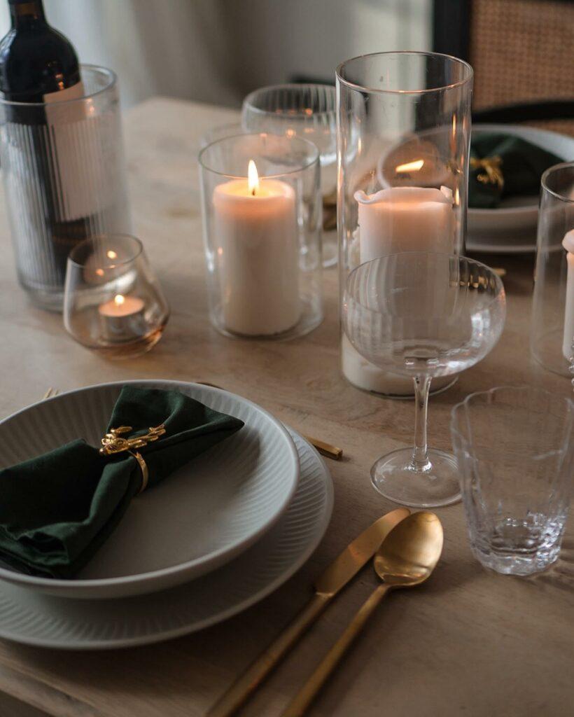 Quelques bougies piliers dans des photophores transparents simples, apporteront enfin une chaleur authentique. Votre table de Noël est prête. Elle est brut et raffinée, authentique et élégante à la fois.
