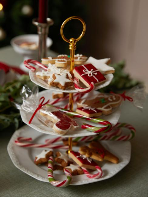 La déco d’une belle table de Noël peut bien sûr rester traditionnelle en rouge, vert et or. Pour combiner ces couleurs à votre table, adoptez une nappe vert sauge, des sets de tables et des serviettes rouges ou en tartan et quelques détails dorés. Pour garder une harmonie chaleureuse, associez systématiquement un motif traditionnel (tartan, carreaux, houx) à une matière plus sobre comme le coton ou le lin. Les accessoires ont aussi leur importance. N’hésitez donc pas à installer un joli présentoir à gâteau rempli de biscuits et sucres d’orge.