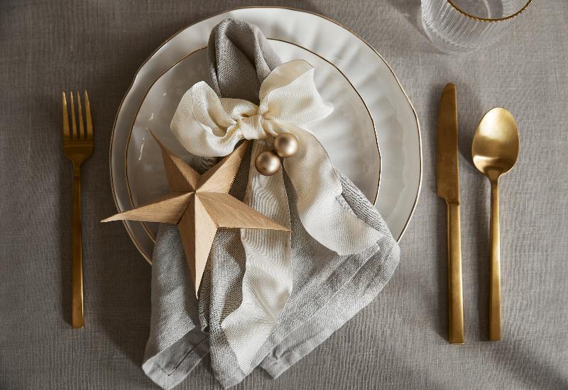 Une table de Noël simple et chic : blanche, beige et dorée