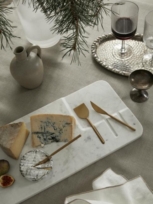 Ainsi, de la vaisselle bicolore noire et blanche avec des liserés dorés marquera une originalité festive. Cependant, vous pourrez marquer votre originalité dans cette décoration sobre avec un vase noir irrégulier orné d’une simple branche de sapin. De même, en fin de repas, un beau plateau à fromages en marbre renforcera l’élégance festive.