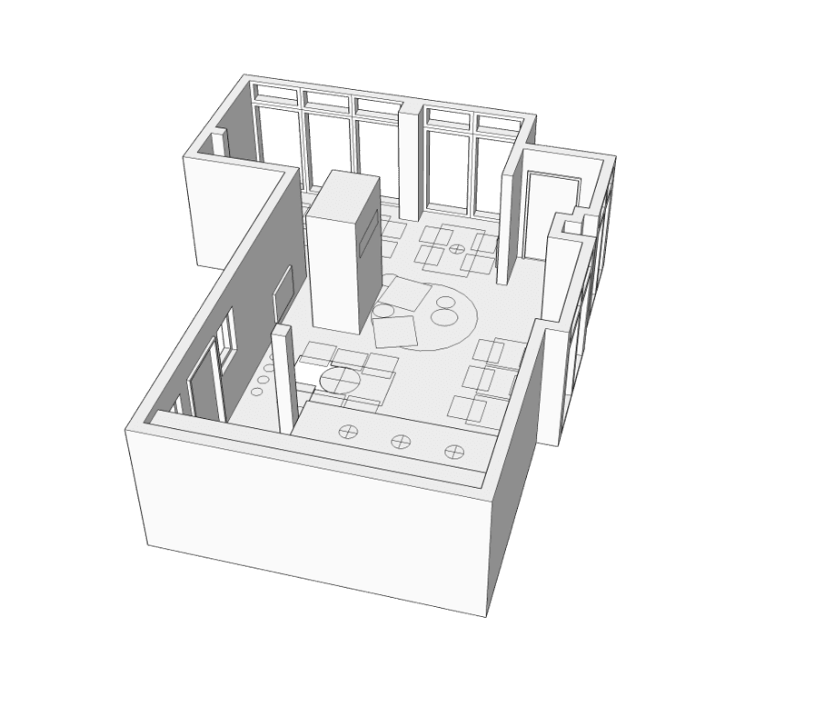 Décoration showroom piliers chaussures miroir rond vestes sur cintres