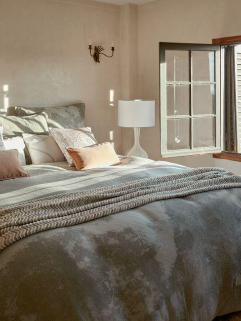 chambre cosy, lampe de chevet en rotin, éclairage tamisé