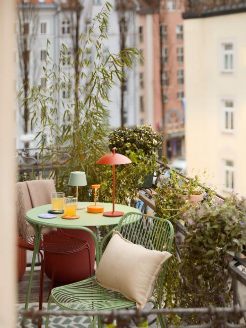 table pour balcon étroit pliante en bois repliée et fixée au garde corps
