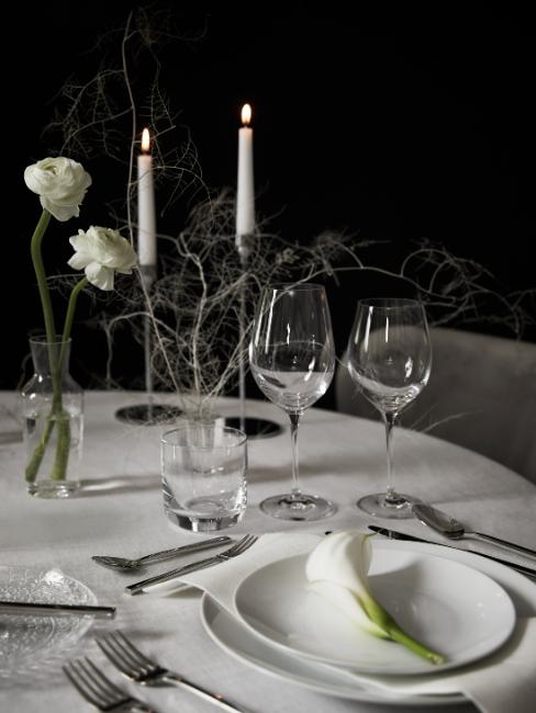 décoration de table, style automne, assiette en forme de fleurs, couverts dorés en laiton brossé
