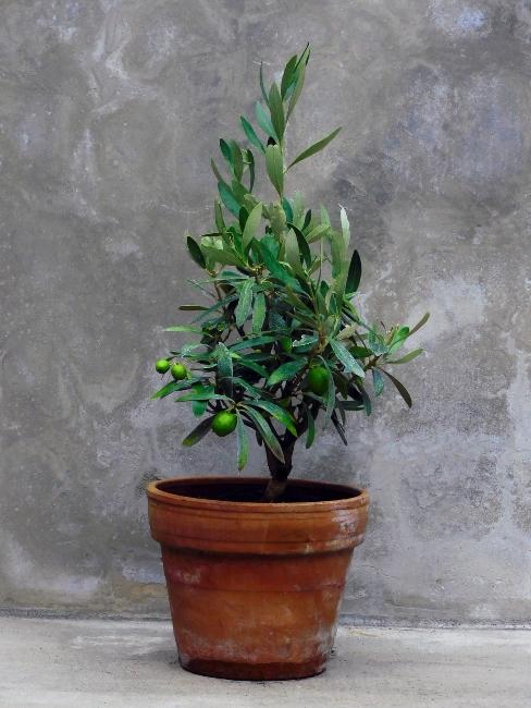 Wohnzimmer im Wabi Sabi Stil mit Holzstuhl und großer Zimmerpflanze