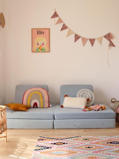 chambre pour un enfant et un bébé style cozy et papier peint motif géométrique