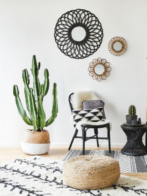 chaise en cannage, tapis ethnique