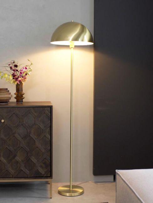 chambre aesthetic, console en bois vintage, plantes, lampadaire en rotin