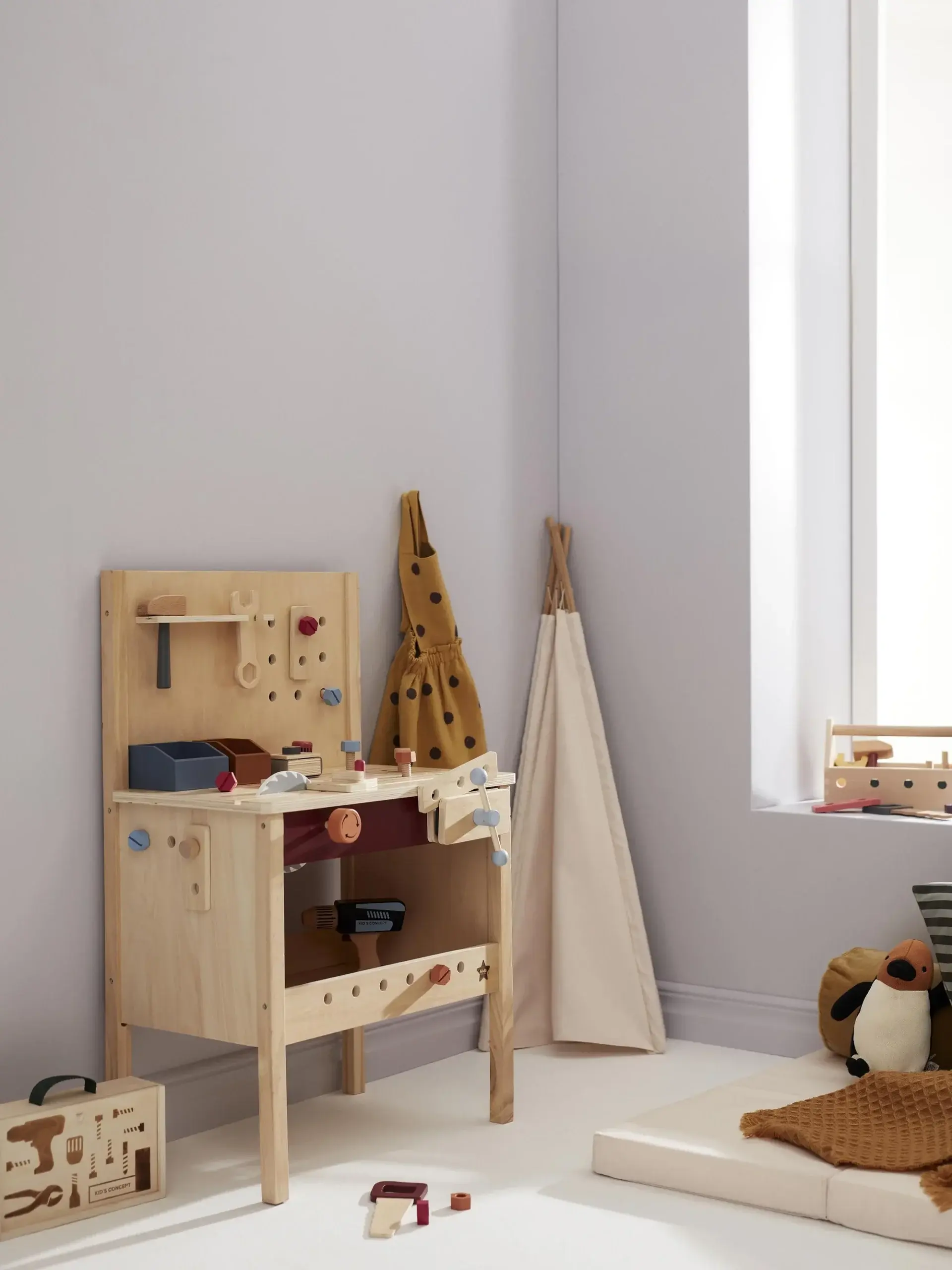 chambre, couvre-lit et coussins couleur parme, tapis gris