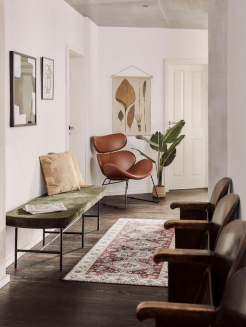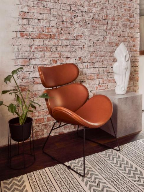 Comme évoqué auparavant, le cuir est une matière de référence pour intégrer la couleur cognac. Dans votre couloir, un simple fauteuil aux lignes vintage devient une pièce forte qui donne un supplément d’authenticité. Bien entendu, un beau cuir synthétique peut avoir les mêmes vertu tout en protégeant les animaux !