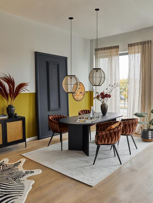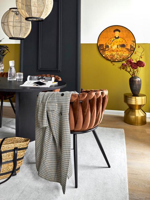 Très chaude et rétro, l’association de la nuance cognac aux teintes bordeaux et chocolat est proche des tendances en matière de couleurs et de décoration. Si vous souhaitez adopter cette combinaison, veillez à avoir des sources de lumière suffisantes pour éviter que votre intérieur ne s’assombrisse.