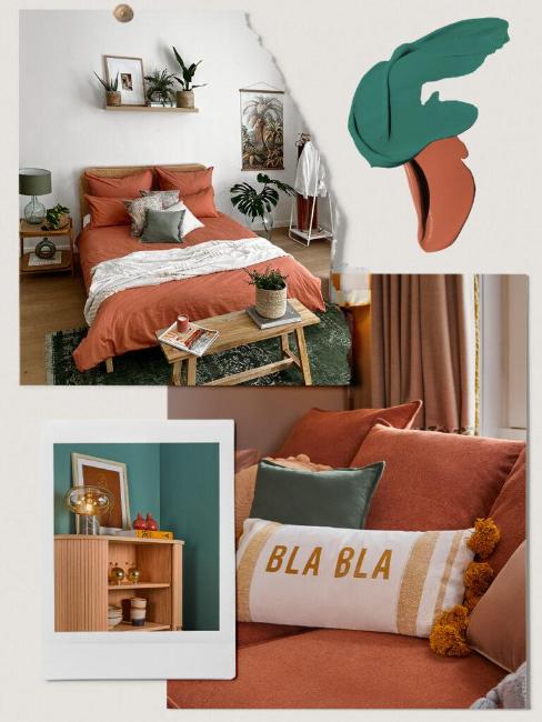 Vous l’avez vu dans l’exemple de chambre précédent : le terracotta peut se marier au vert bouteille. C’est un mariage de couleur en vogue car il est chaleureux et rappelle la nature, deux tendances très présentes en déco d’intérieur.