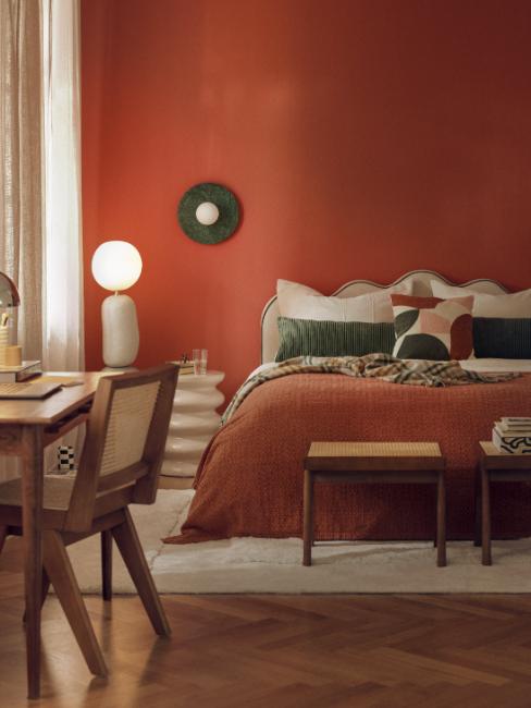 Associer la couleur terracotta en peinture dans une chambre arty et 1970’s